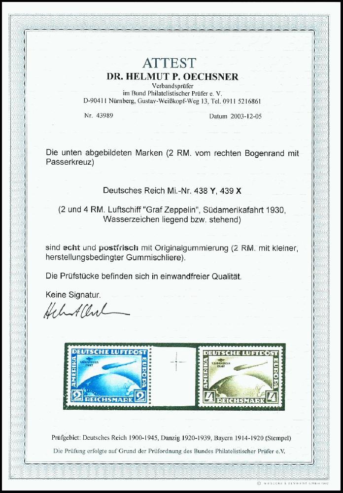 | Zusatzinformationen und Suchstichworte: | Dr. Reinhard Fischer 188. Auktion 1. - 3. September 2022 Los 2240 Deutsches Reich, 1923/32 Weimarer Republik 2 und 4 M. Südamerikafahrt, 2 m. vom rechten Bogenrand und mit kleiner, herstellungsbedingter Gummischliere, postfrisch, Fotoattest Dr. Oechsner BPP, Mi. 3500,-, ex Sammlung Höffen Ausruf 800,00 EUR |