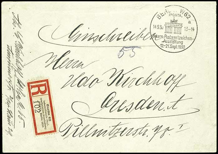 | Zusatzinformationen und Suchstichworte: | Dr. Reinhard Fischer 188. Auktion 1. - 3. September 2022 Los 2246 Deutsches Reich, 1923/32 Weimarer Republik IPOSTA-Block mit Sonderstempel "BERLIN 13.9.30" rückseitig auf R-Brief nach Dresden mit Ankunftstempel, tadellos, Fotoattest Peschl BPP, ex Sammlung Höffen Ausruf 600,00 EUR |