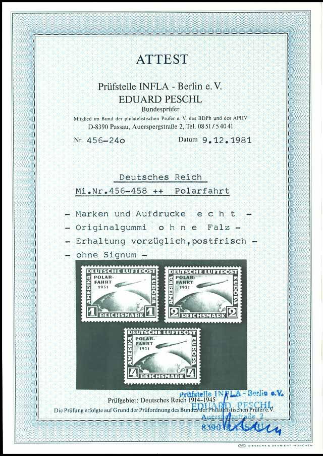 | Zusatzinformationen und Suchstichworte: | Dr. Reinhard Fischer 188. Auktion 1. - 3. September 2022 Los 2250 Deutsches Reich, 1923/32 Weimarer Republik 1 Reichsmark bis 4 Reichsmark "Polarfahrt", postfrischer Satz zu drei Werten, 4 Reichsmark leichter Fingerabdruck, Fotoattest Schlegel BPP, Mi. 4.400.- Ausruf 1.000,00 EUR |