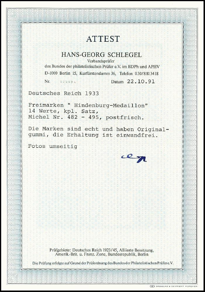 | Zusatzinformationen und Suchstichworte: | Dr. Reinhard Fischer 188. Auktion 1. - 3. September 2022 Los 2258 Deutsches Reich, 1933/45 Drittes Reich 3 - 100 Pfg. Hindenburg, postfrisch kpl, Fotoattest Schlegel BPP, Mi. 1200,-, ex Sammlung Höffen Ausruf 300,00 EUR |