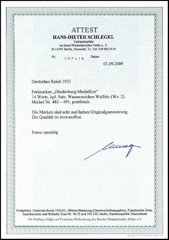 | Prüfgebiet: | Deutsches Reich 1933 - 1945 (Mi-Nr. 479 - 910) |