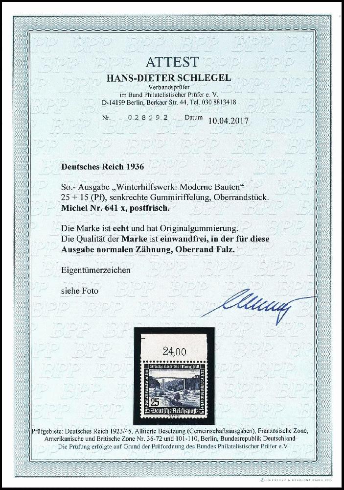 | Prüfgebiet: | Deutsches Reich 1933 - 1945 (Mi-Nr. 479 - 910) |