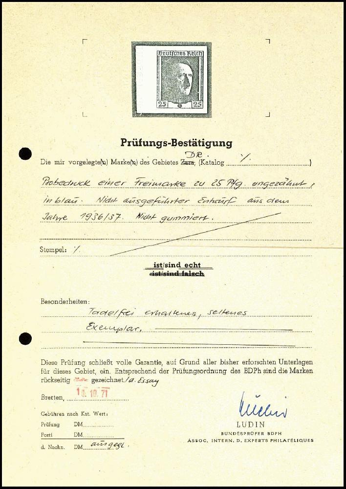 | Prüfgebiet: | Deutsches Reich Specimen, Probedrucke, Essay, Maschinenprobe |