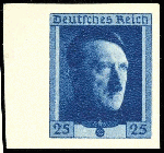 | Zusatzinformationen und Suchstichworte: | Dr. Reinhard Fischer 188. Auktion 1. - 3. September 2022 Los 2333 Deutsches Reich, 1933/45 Drittes Reich 25 Pfg Hitlerkopf, ungezähnter Probedruck in blau in abweichender Zeichnung auf gelblichem Kartonpapier, ungebraucht ohne Gummierung - wie hergestellt, gepr. E. Ludin, Mi. hoffnungslos unterbewertete Seltenheit! Zuschlag 200,00 EUR |