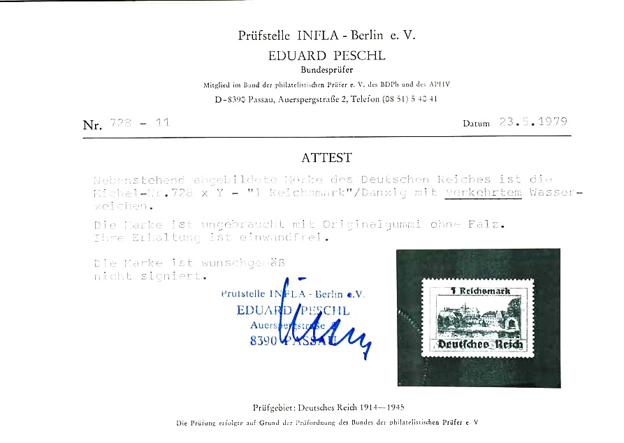 | Prüfer: | Peschl, Eduard (BPP (Bund Philatelistischer Prüfer)) |