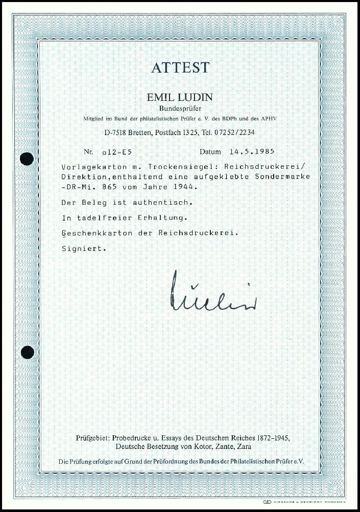 | Prüfgebiet: | Deutsches Reich Specimen, Probedrucke, Essay, Maschinenprobe |