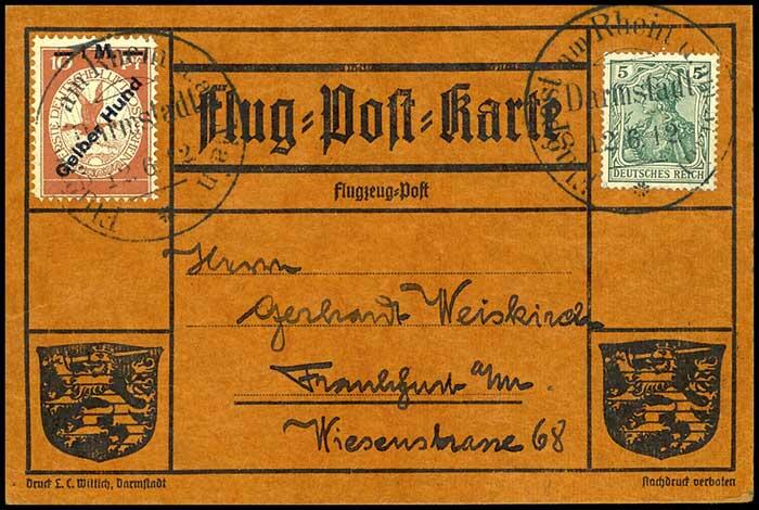 | Zusatzinformationen und Suchstichworte: | Dr. Reinhard Fischer 188. Auktion 1. - 3. September 2022 Los 1995 Deutsches Reich 1 M. gelber Hund auf Karte von "DARMSTADT 12.6.12" nach Frankfurt M., Fotobefund Simon BPP, Mi. 280,- Ausruf 70,00 EUR |