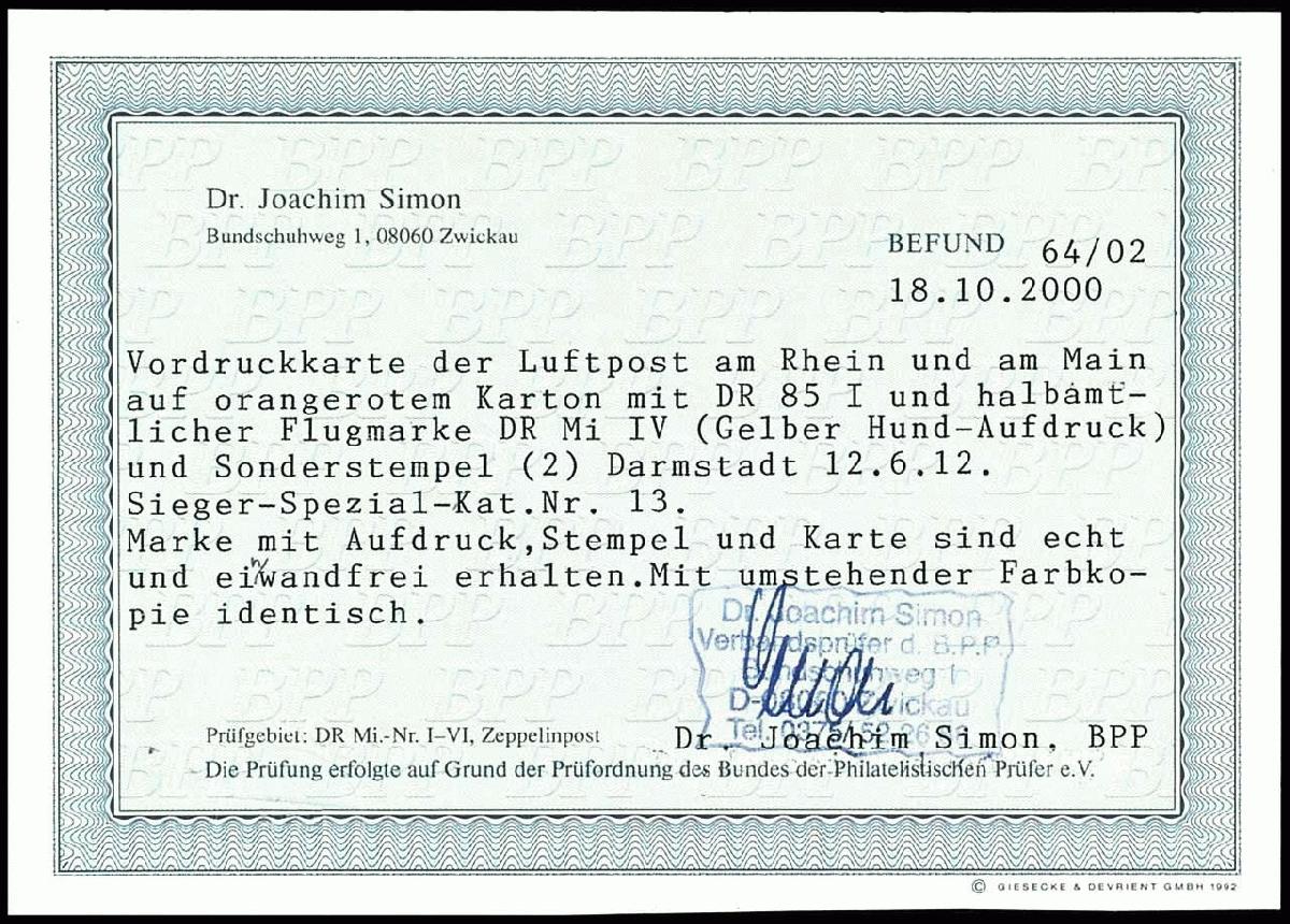 | Prüfer: | Simon, Joachim (BPP (Bund Philatelistischer Prüfer)) |