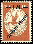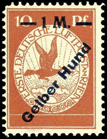 | Zusatzinformationen und Suchstichworte: | Dr. Reinhard Fischer 188. Auktion 1. - 3. September 2022 Los 1996 Deutsches Reich 1 Mark auf 10 Pfg Flugpost mit Aufdruck "Gelber Hund", tadellos postfrisch und sehr farbfrisch, unsigniert mit Fotoattest Brettl BPP: "tadellose Erhaltung. Völlig postfrisch, ohne Falz.", Mi. 2.500.- Zuschlag 1.200,00 EUR |