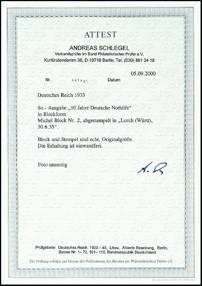 | Prüfgebiet: | Deutsches Reich Blocks 1930 - 1937 |