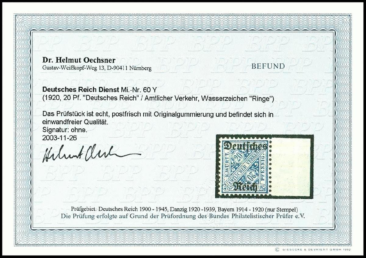 | Prüfgebiet: | Deutsches Reich Dienstmarken 1874 - 1945 |