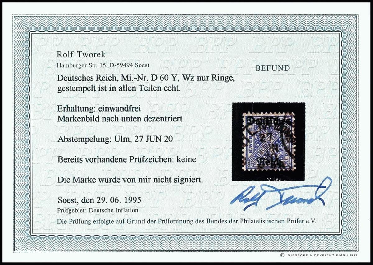 | Prüfer: | Tworek, Rolf (BPP (Bund Philatelistischer Prüfer)) |