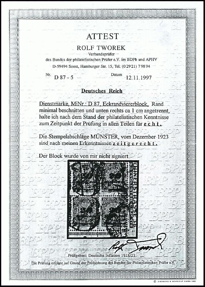 | Prüfgebiet: | Deutsches Reich Dienstmarken 1874 - 1945 |
