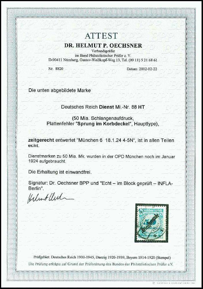 | Prüfgebiet: | Deutsches Reich Dienstmarken 1874 - 1945 |