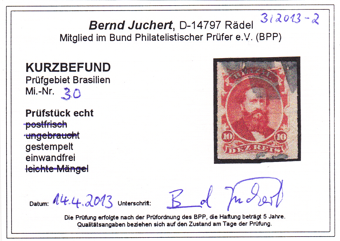 | Prüfer: | Juchert, Bernd (BPP (Bund Philatelistischer Prüfer)) |