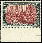 | Zusatzinformationen und Suchstichworte: | Dr. Reinhard Fischer 188. Auktion 1. - 3. September 2022 Los 2667 Deutsche Auslandspost Marokko 6,25 Pes. auf 5 Mark Reichspost in Urmarkentype II, sog. "fetter Aufdruck", tadellos postfrisch, gepr. Steuer BPP und Fotoattest Jäschke-Lantelme BPP: "in fehlerfreier, postfrischer Erhaltung.", Mi. 600.- Zuschlag 180,00 EUR |