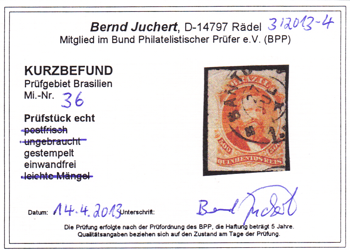 | Prüfer: | Juchert, Bernd (BPP (Bund Philatelistischer Prüfer)) |