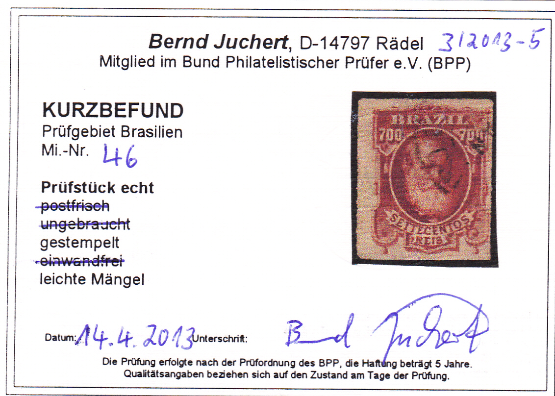 | Prüfer: | Juchert, Bernd (BPP (Bund Philatelistischer Prüfer)) |