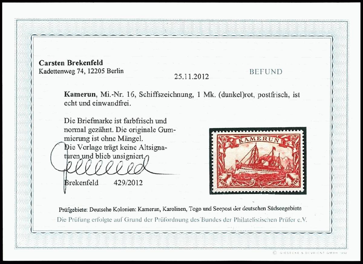 | Prüfer: | Brekenfeld, Carsten (BPP (Bund Philatelistischer Prüfer)) |