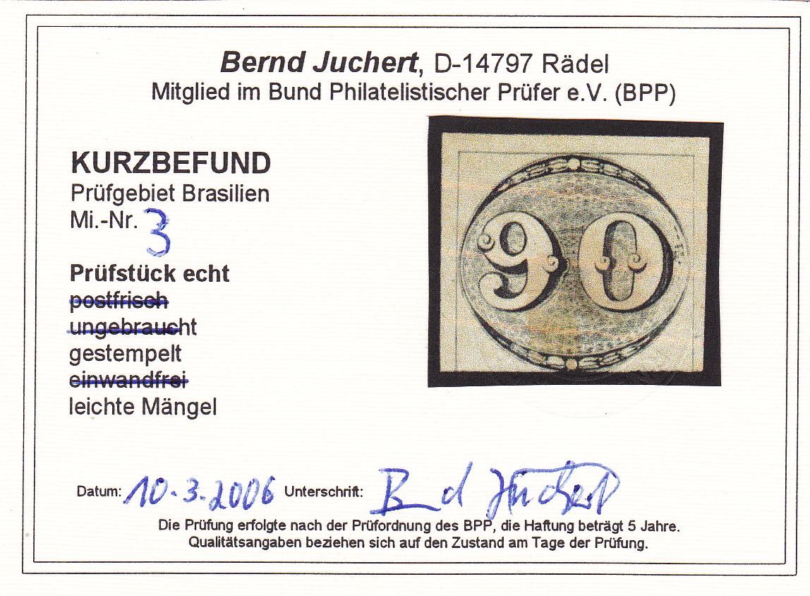 | Prüfer: | Juchert, Bernd (BPP (Bund Philatelistischer Prüfer)) |