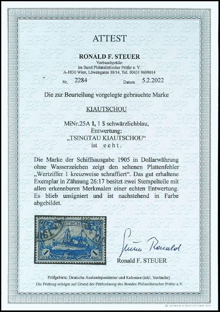 | Prüfer: | Steuer, Ronald F. (BPP (Bund Philatelistischer Prüfer)) |