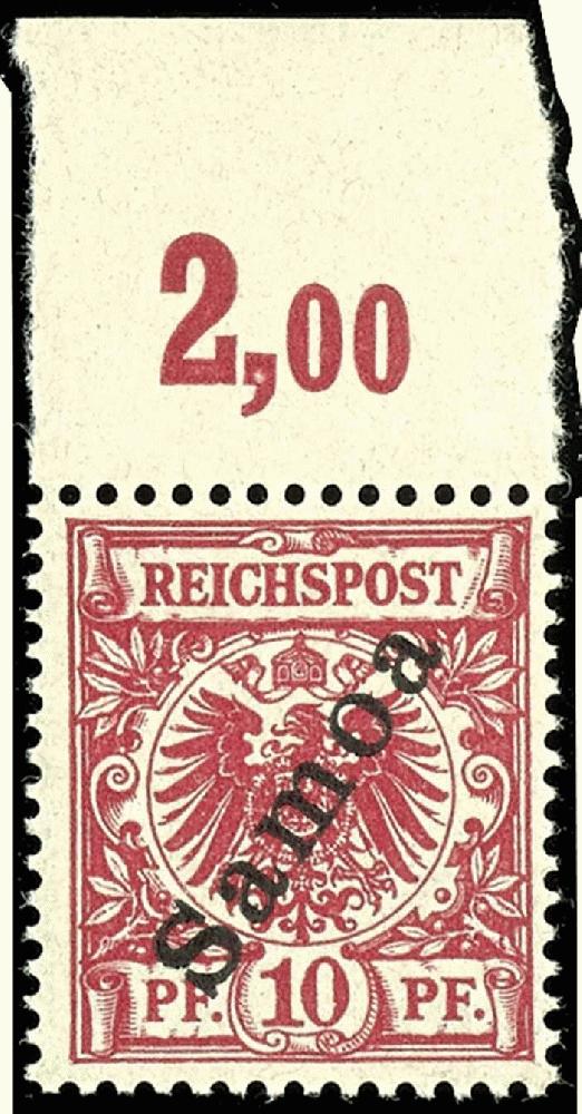 | Zusatzinformationen und Suchstichworte: | Dr. Reinhard Fischer 188. Auktion 1. - 3. September 2022 Los 3045 Deutsche Kolonien Samoa 10 Pf dunkelrosa(rot), UV gelblichorange, tadellos postfrisch vom Oberrand, unsigniert, Fotobefund Jäschke-Lantelme BPP: "in fehlerfreier, postfrischer Erhaltung." Mi. 400.- Zuschlag 360,00 EUR |