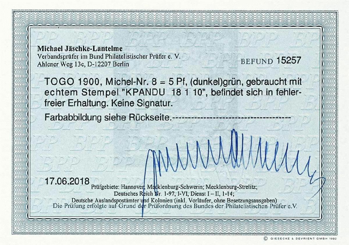 | Prüfgebiet: | Deutsche Kolonien Togo |