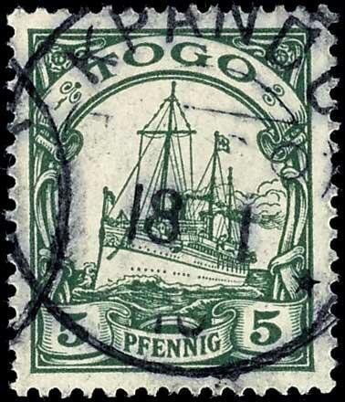 | Zusatzinformationen und Suchstichworte: | Dr. Reinhard Fischer 188. Auktion 1. - 3. September 2022 Los 3101 Deutsche Kolonien Togo KPANDU (TOGO) 18 1 10 - zentrischer Abschlag auf tadelloser 5 Pfg Kaiseryacht, Fotobefund Jäschke-Lantelme BPP (2018): "echt, in fehlerfreier Erhaltung." Ausruf 80,00 EUR |