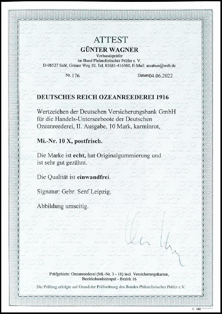 | Prüfgebiet: | Deutsches Reich Schiffspost im Ausland Ozeanreederei 1916/17 |