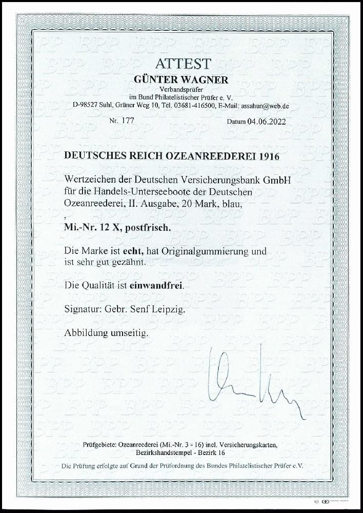 | Prüfgebiet: | Deutsches Reich Schiffspost im Ausland Ozeanreederei 1916/17 |
