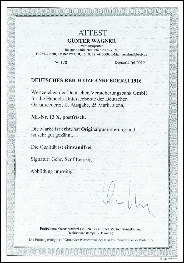 | Prüfgebiet: | Deutsches Reich Schiffspost im Ausland Ozeanreederei 1916/17 |