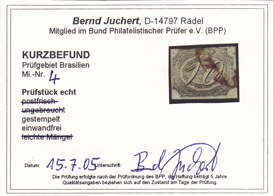 | Prüfer: | Juchert, Bernd (BPP (Bund Philatelistischer Prüfer)) |