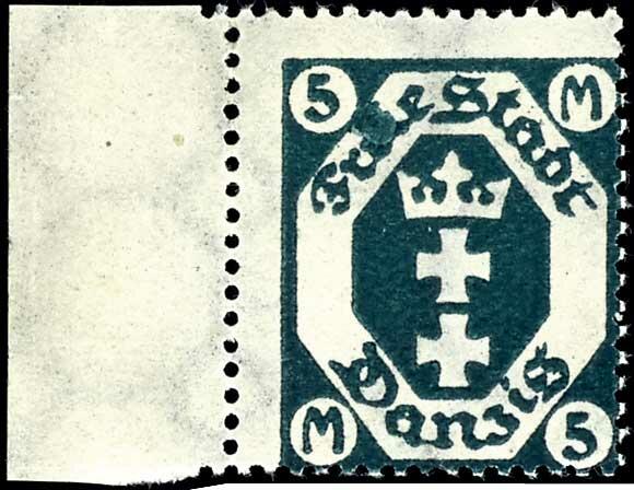 | Zusatzinformationen und Suchstichworte: | Dr. Reinhard Fischer 188. Auktion 1. - 3. September 2022 Los 3247 Danzig 5 Mark Staatswappen mit Wasserzeichen 4 "Fliesen", für diese Type typisch dezentriertes Kabinettstück, tadellos ungebraucht, vom linken Bogenrand - hier auch von der Bildseite das Wasserzeichen sehr gut sichtbar!, sehr seltene Marke, Fotoattest Dr. Oechsner BPP: " in einwandfreier Qualität.", Mi. 3.500.- Ausruf 850,00 EUR |