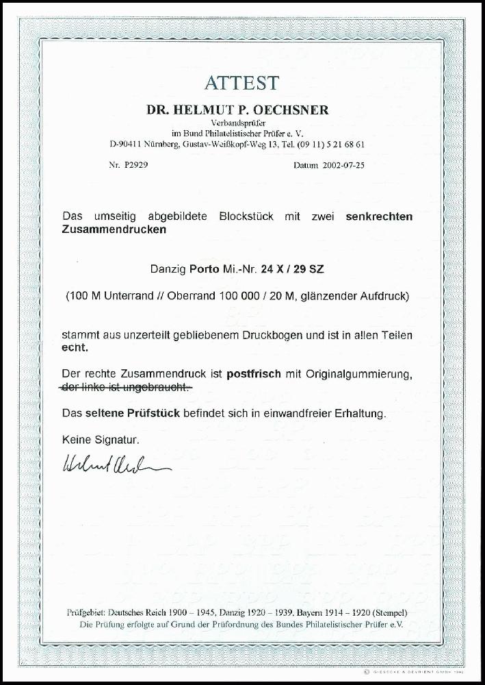 | Prüfgebiet: | Danzig Portomarken |
