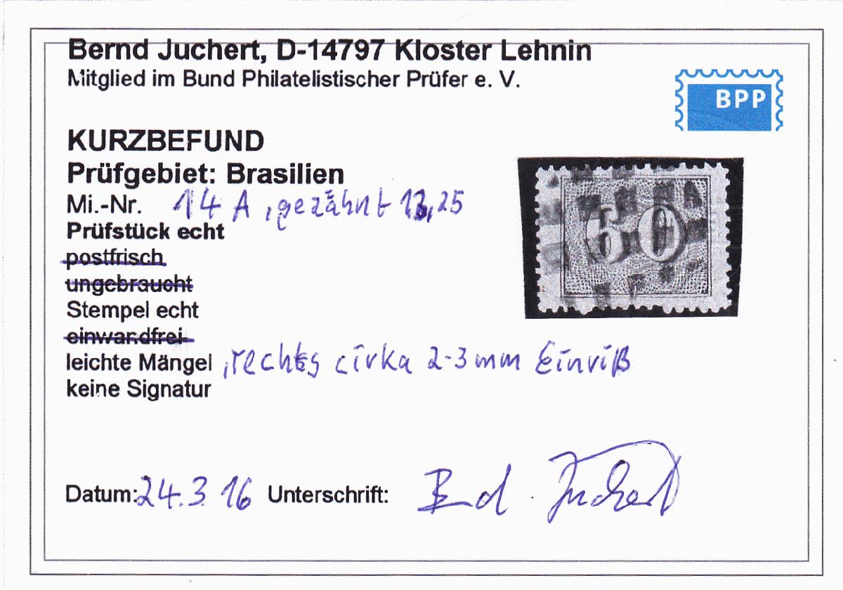 | Prüfer: | Juchert, Bernd (BPP (Bund Philatelistischer Prüfer)) |
