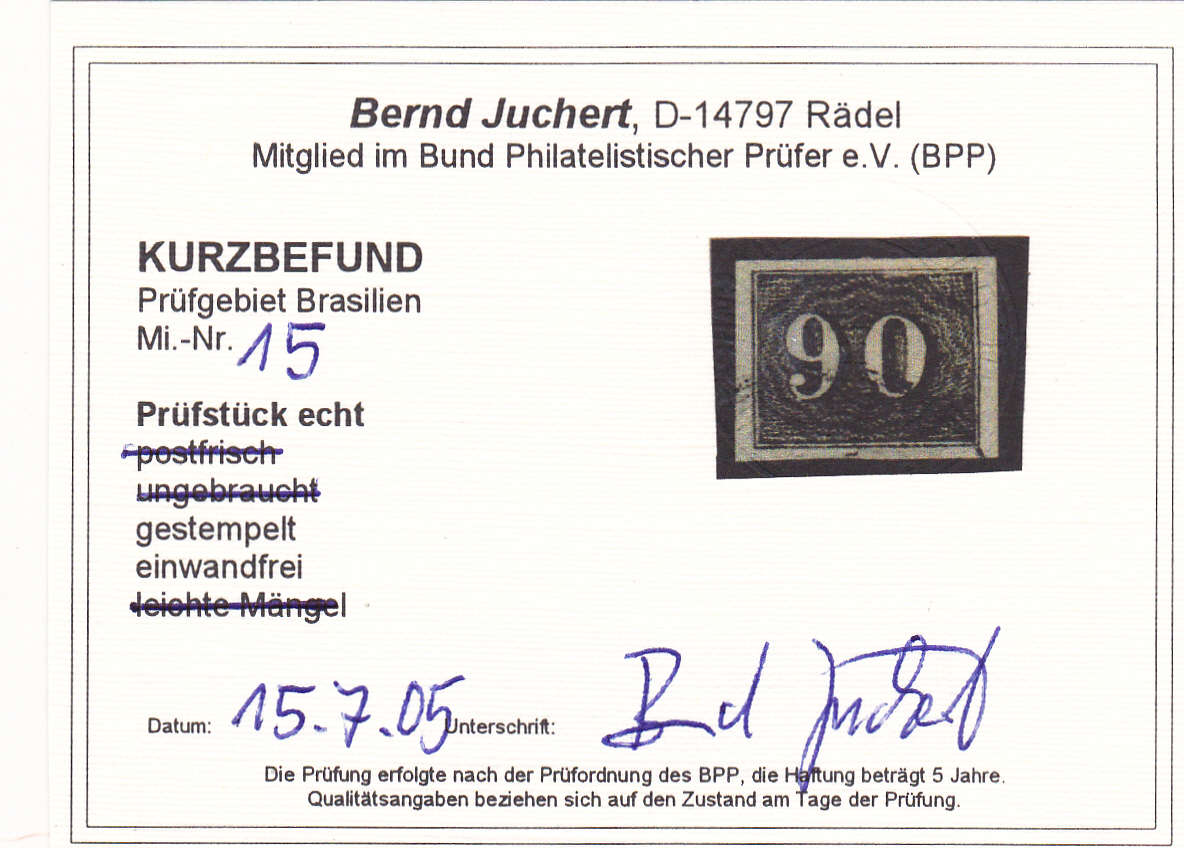 | Prüfer: | Juchert, Bernd (BPP (Bund Philatelistischer Prüfer)) |