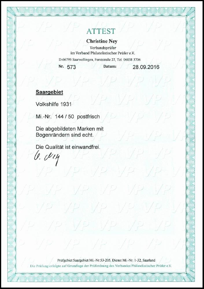 | Prüfgebiet: | Saargebiet (Mi-Nr. 1 - 205) |