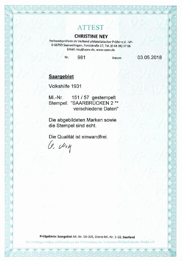 | Prüfgebiet: | Saargebiet (Mi-Nr. 1 - 205) |