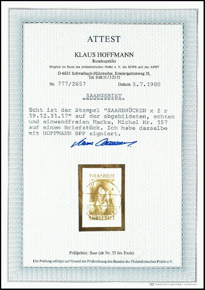 | Prüfgebiet: | Saargebiet (Mi-Nr. 1 - 205) |
