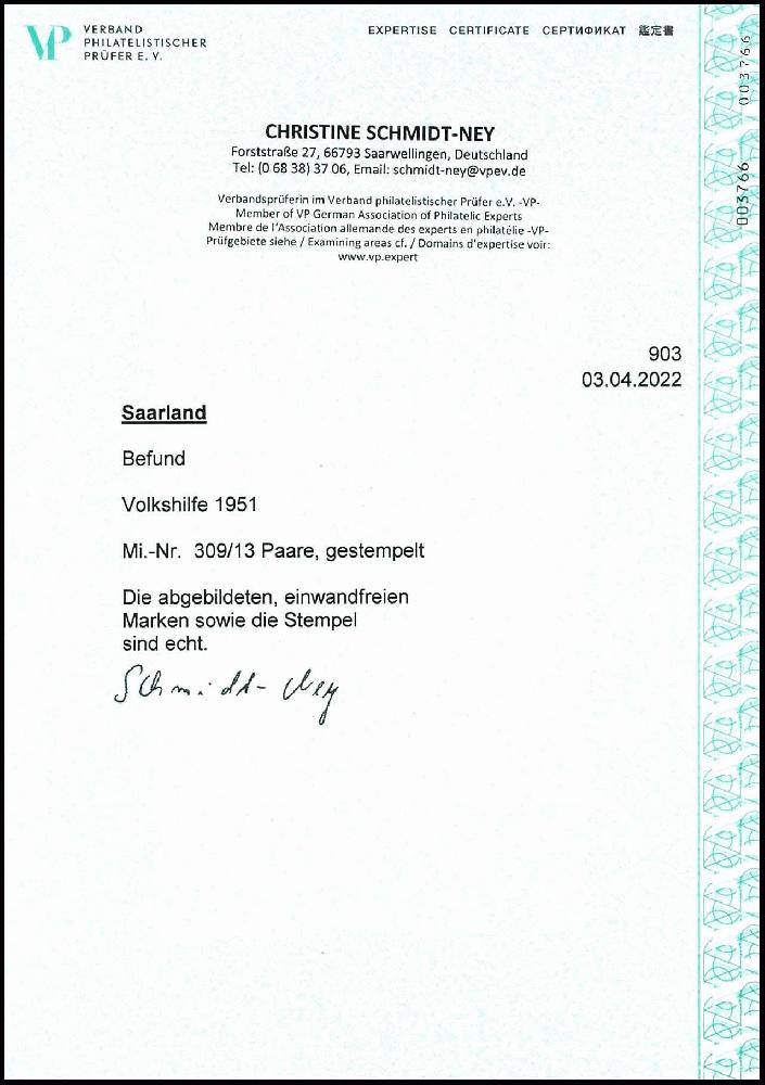 | Prüfgebiet: | Saarland (ab Mi-Nr. 206) |