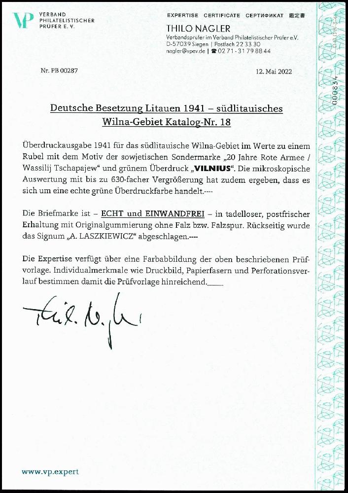 | Prüfgebiet: | Deutsche Besetzung WK 2 Litauen Vilnius |