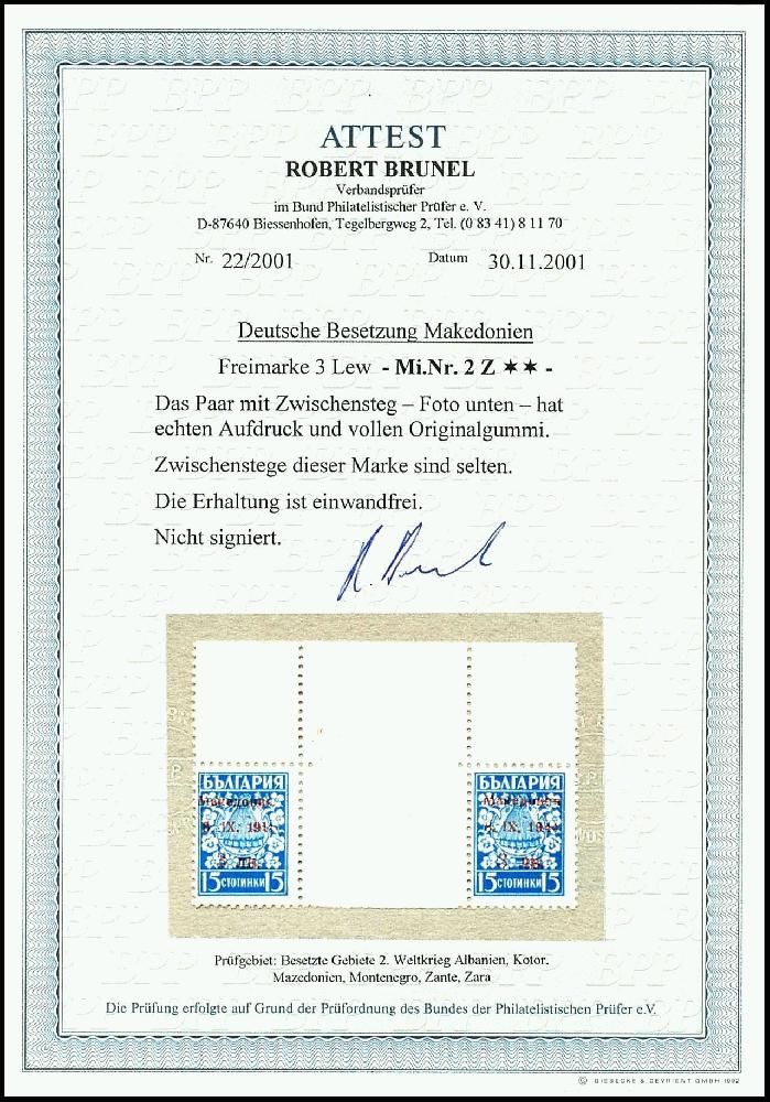 | Zusatzinformationen und Suchstichworte: | Dr. Reinhard Fischer 188. Auktion 1. - 3. September 2022 Los 3526 Deutsche Besetzung II. WK Mazedonien 3 L. auf 15 St., waager. Paar mit Zwischensteg, postfrisch, Fotoattest Brunel BPP, Mi. 600,- Ausruf 150,00 EUR |