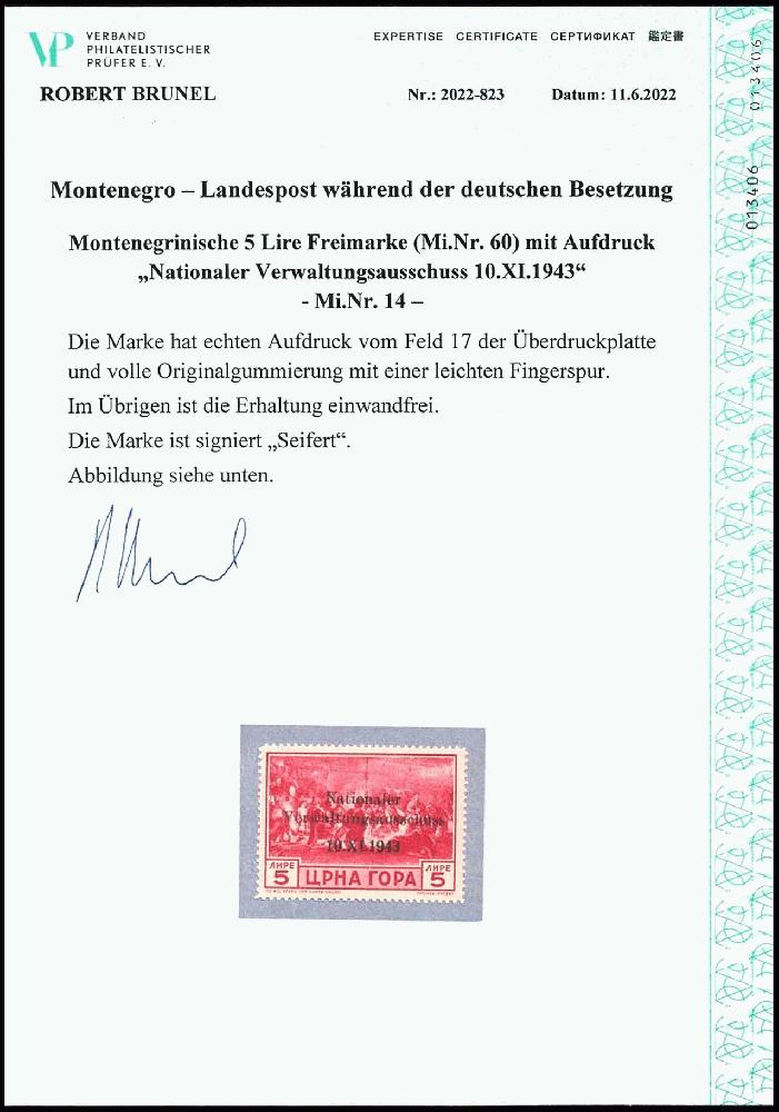 | Prüfgebiet: | Deutsche Besetzung WK 2 Montenegro |
