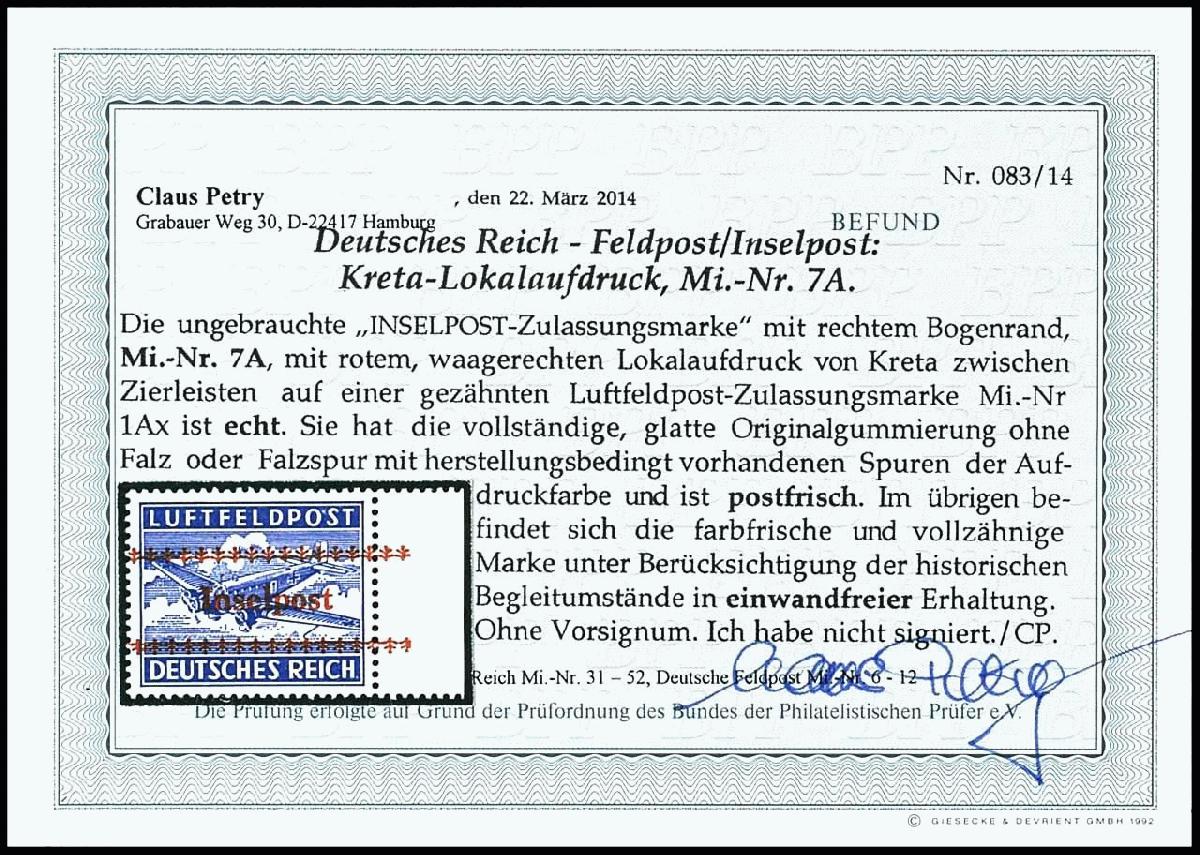 | Prüfer: | Petry, Claus (BPP (Bund Philatelistischer Prüfer)) |