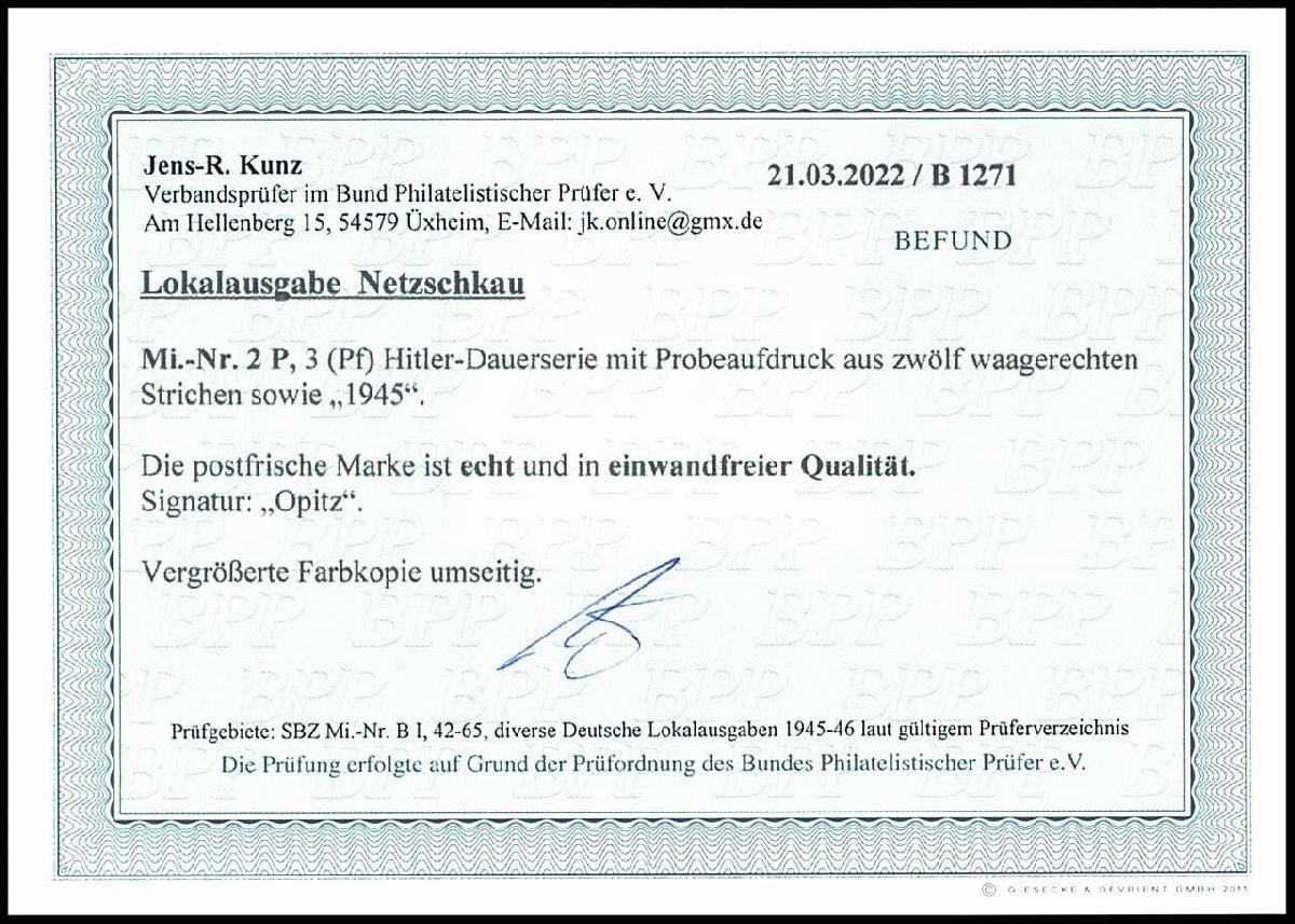 | Prüfgebiet: | Deutsche Lokalausgaben 1945 Netzschkau |