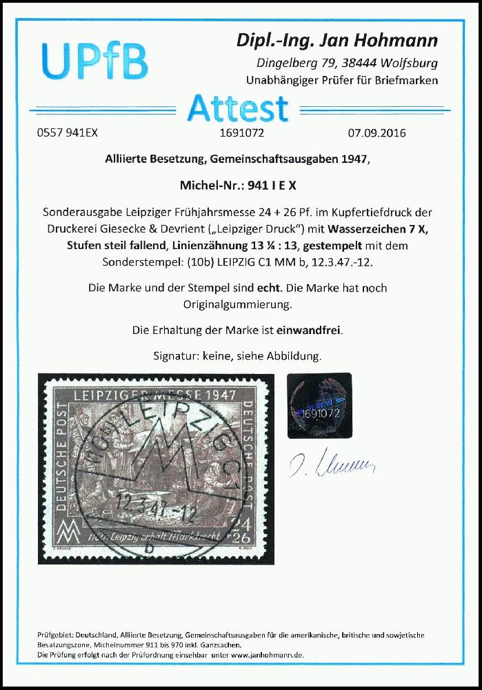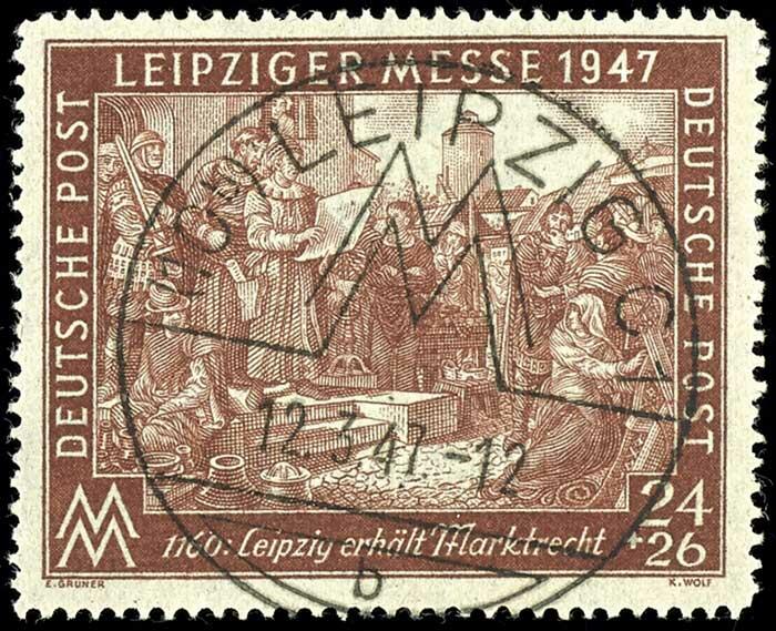 | Zusatzinformationen und Suchstichworte: | Dr. Reinhard Fischer 188. Auktion 1. - 3. September 2022 Los 3749 Gemeinschaftsausgaben 24 Pfg. Leipziger Frühjahrsmesse, gez. L 13¼ : 13, zentrisch gestempelt mit SST "(10b) LEIPZIG C1 b 12.3.47" , tadellose Erhaltung, seltene Marke, Fotoattest Dipl.-Ing. Hohmann: "Die Marke und der Stempel sind echt. Die Erhaltung der Marke ist einwandfrei.", Mi. 1.100.- Zuschlag 380,00 EUR |