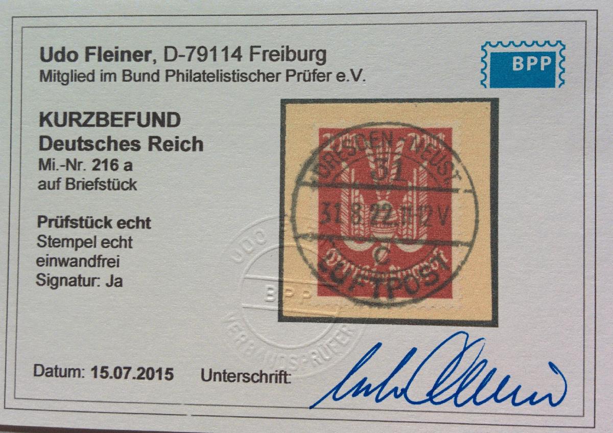 | Prüfer: | Fleiner, Udo (BPP (Bund Philatelistischer Prüfer)) |
