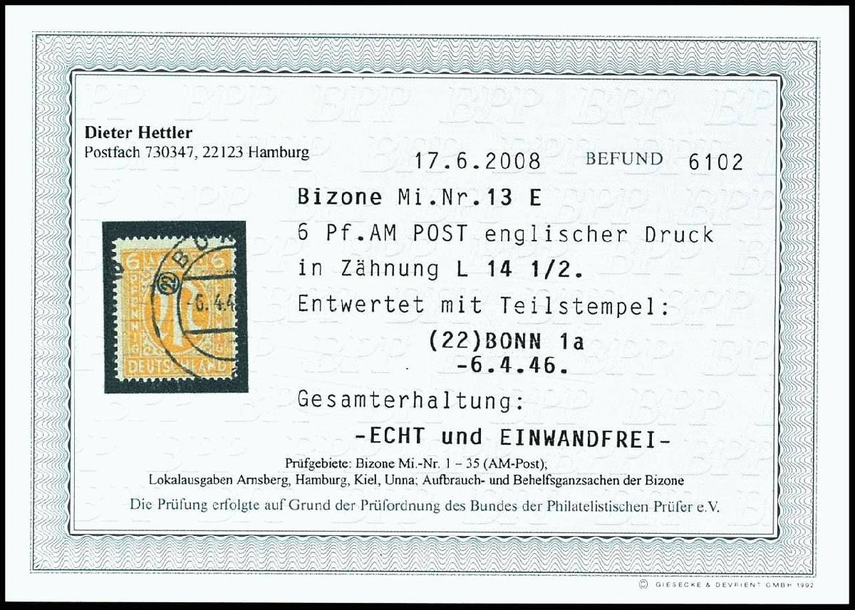| Prüfer: | Hettler, Dieter (BPP (Bund Philatelistischer Prüfer)) |