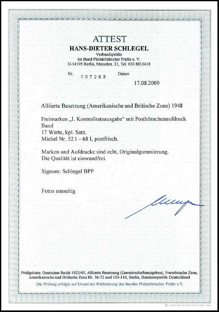 | Prüfgebiet: | Alliierte Besetzung Bizone |