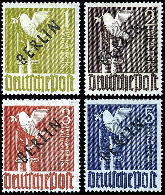 | Zusatzinformationen und Suchstichworte: | Dr. Reinhard Fischer 188. Auktion 1. - 3. September 2022 Los 4133 Berlin 1 Mark bis 5 Mark Schwarzaufdruck, je mit Aufdruckfehler X "Zwei Brüche im unteren Bogen des B", vier Werte, tadellos ungebraucht mit Originalgummierung, Fotoattest A. Schlegel BPP (2004), Mi. für ** 3.000.- - als Garnitur aller vier Höchstwerte selten! (alter Ausruf 400) Ausruf 300,00 EUR |